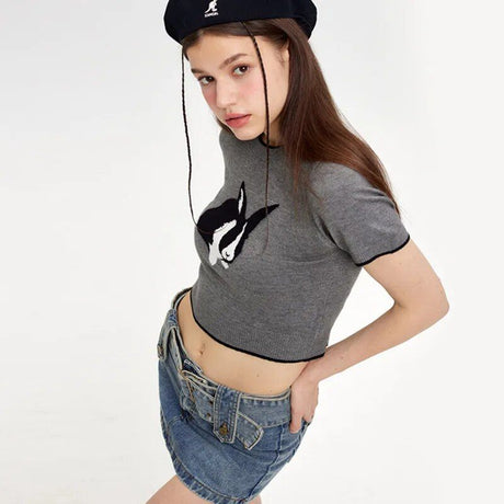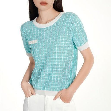 Normaler Preis $ 1,087.00 MXNGrundpreis /Nicht verfügbarBezauberndes kurzärmliges Strick-T-Sh...