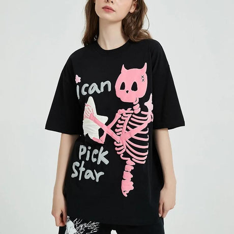 Normaler Preis $ 1,274.00 MXNGrundpreis /Nicht verfügbarTotenkopf Skelett Stern Grafik T-Shirt