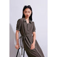 Was dieses Kleid auszeichnet, ist seine Kombination aus Luxus und Funktionalität. Der geschnürte Bund betont nicht nur Ihre Figur, sondern sorgt auch für anpassbaren Tragekomfort. Die Marinefarbe ist eine zeitlose Wahl, die sowohl elegant als auch leger getragen werden kann und es zu einem Grundbestandteil Ihrer Garderobe macht. Egal, ob Sie zu einem Geschäftstreffen oder einem zwanglosen Brunch gehen, dieses Kleid ist genau das Richtige für Sie. Das nicht dehnbare Baumwollmischgewebe sorgt für Langlebigkeit. Die Büffelärmel und der Umlegekragen verleihen einen raffinierten Touch und lassen Sie mühelos schick aussehen. Das knielange Design und die A-Linien-Silhouette bieten eine schmeichelhafte Passform für alle Körpertypen.