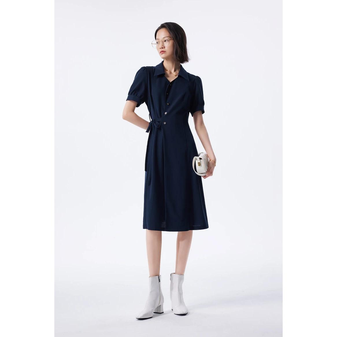 Beginnen Sie die neue Saison mit einem Hauch von Luxus und Eleganz in unserem eleganten marineblauen Kleid mit geschnürtem Taillenbund. Dieses mittellange Kleid wurde entworfen, um sowohl Komfort als auch Stil zu bieten und ist perfekt für jeden Anlass, egal ob es sich um einen lässigen Tagesausflug oder ein formelles Büromeeting handelt. Das Kleid aus einer hochwertigen Baumwollmischung verfügt über einen Umlegekragen und Büffelärmel, die Ihrem Look einen zeitlosen Charme verleihen. Der geschnürte Bund betont Ihre Taille und verleiht Ihnen eine schmeichelhafte Silhouette, während die normale Passform den ganzen Tag über für Komfort sorgt. Die solide Marinefarbe verleiht einen Hauch von Klasse und macht es zu einer vielseitigen Ergänzung Ihrer Garderobe. Das Kleid ist in einer A-Linien-Silhouette geschnitten und bietet einen anmutigen Fall, der sich mit Ihnen bewegt. Das knielange Design ist sowohl schlicht als auch stilvoll und eignet sich daher für verschiedene Anlässe. Der Pullover-Verschluss und die natürliche Taille machen es leicht zu tragen und perfekt für die Herbstsaison.