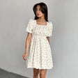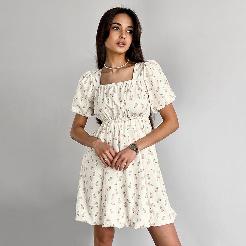 Elegantes französisches Kleid mit Blumenmuster und Puffärmeln