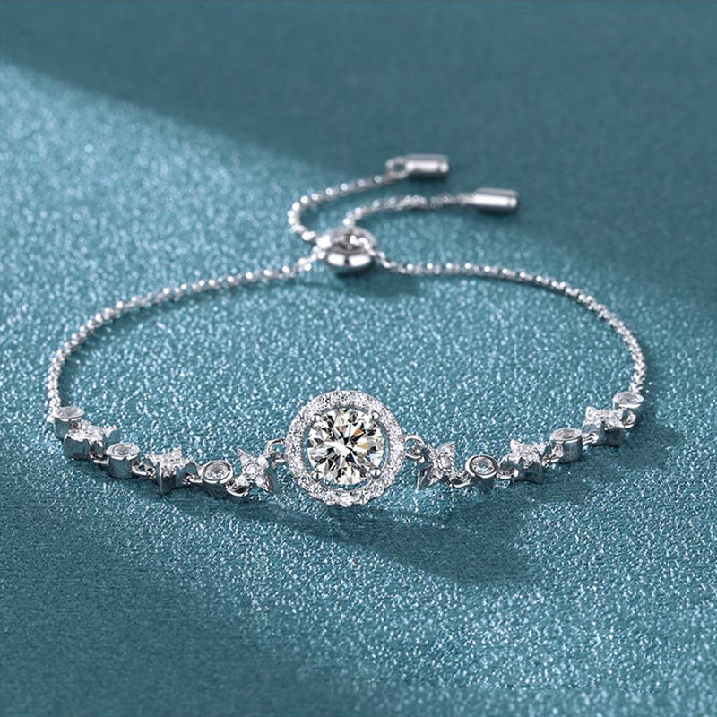 Moissanit-Armband aus 1 Karat Silber - Runder Beutel mit hohem Kohlenstoffgehalt ist auf Lager und wird versandt, sobald es wieder verfügbar ist