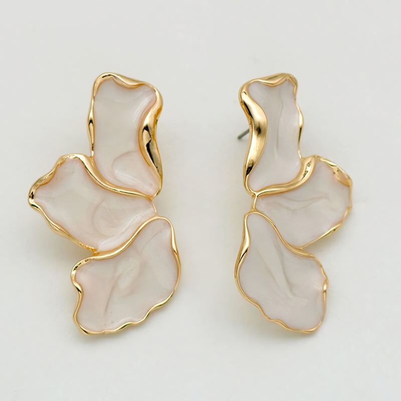 Trendy Blütenblatt-Ohrringe aus cremefarbener Emaille aus Zinklegierung