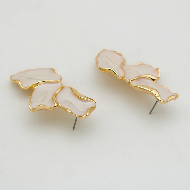 Trendy Blütenblatt-Ohrringe aus cremefarbener Emaille aus Zinklegierung - Gold-Creme ist auf Lager und wird versandt, sobald es wieder verfügbar ist