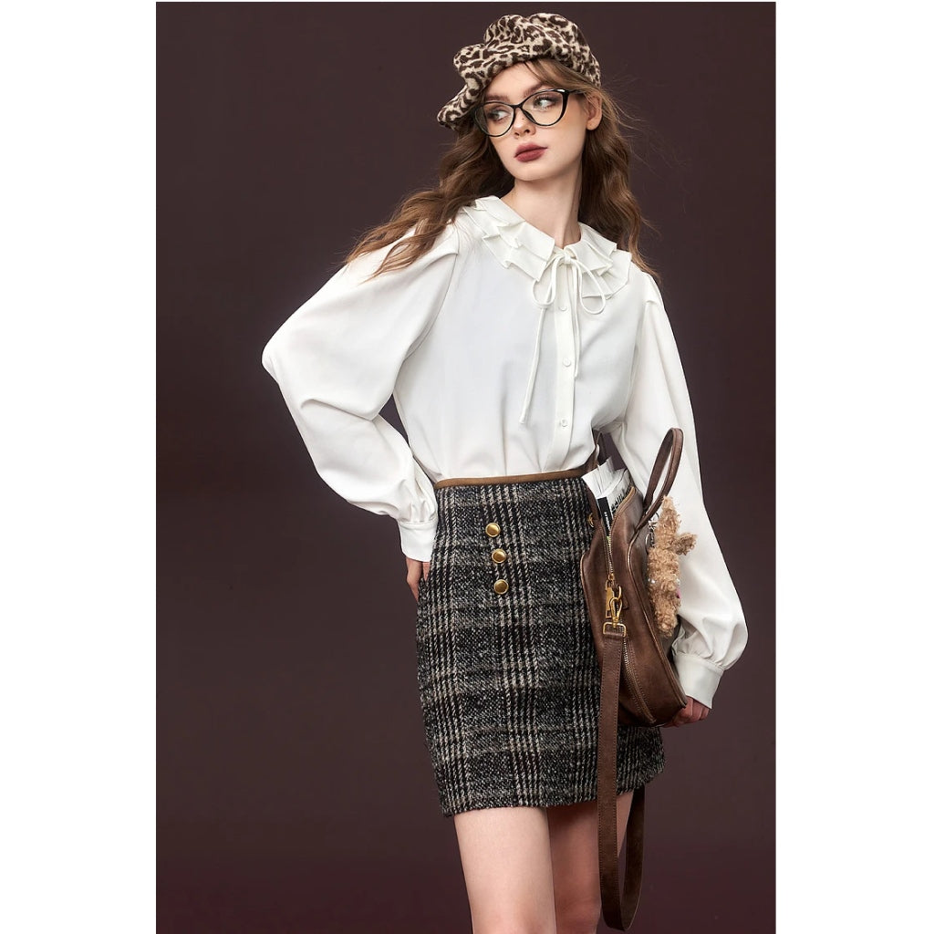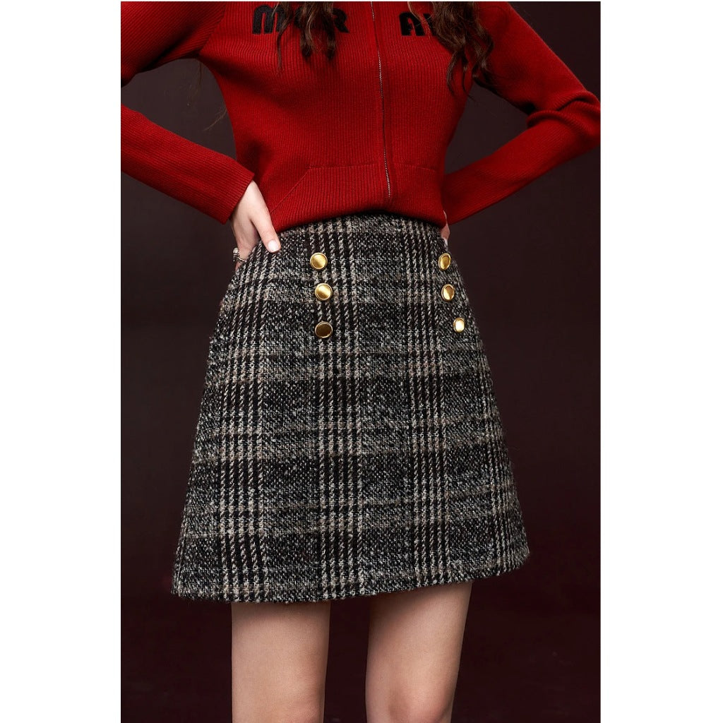 Bereit, Ihre Herbstmode aufzupeppen? Klicken Sie jetzt auf „In den Warenkorb“ und genießen Sie den schicken und eleganten Look des Gyaru Mini-Wollrocks aus den 2000ern. Warten Sie nicht – Ihr neuer Lieblingsrock ist nur einen Klick entfernt!