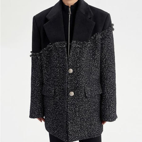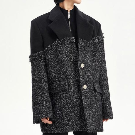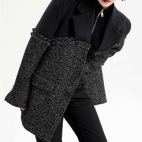 Normaler Preis €74,95 EURGrundpreis /Nicht verfügbarSchwarzer Tweed-Wollmantel-Parkas