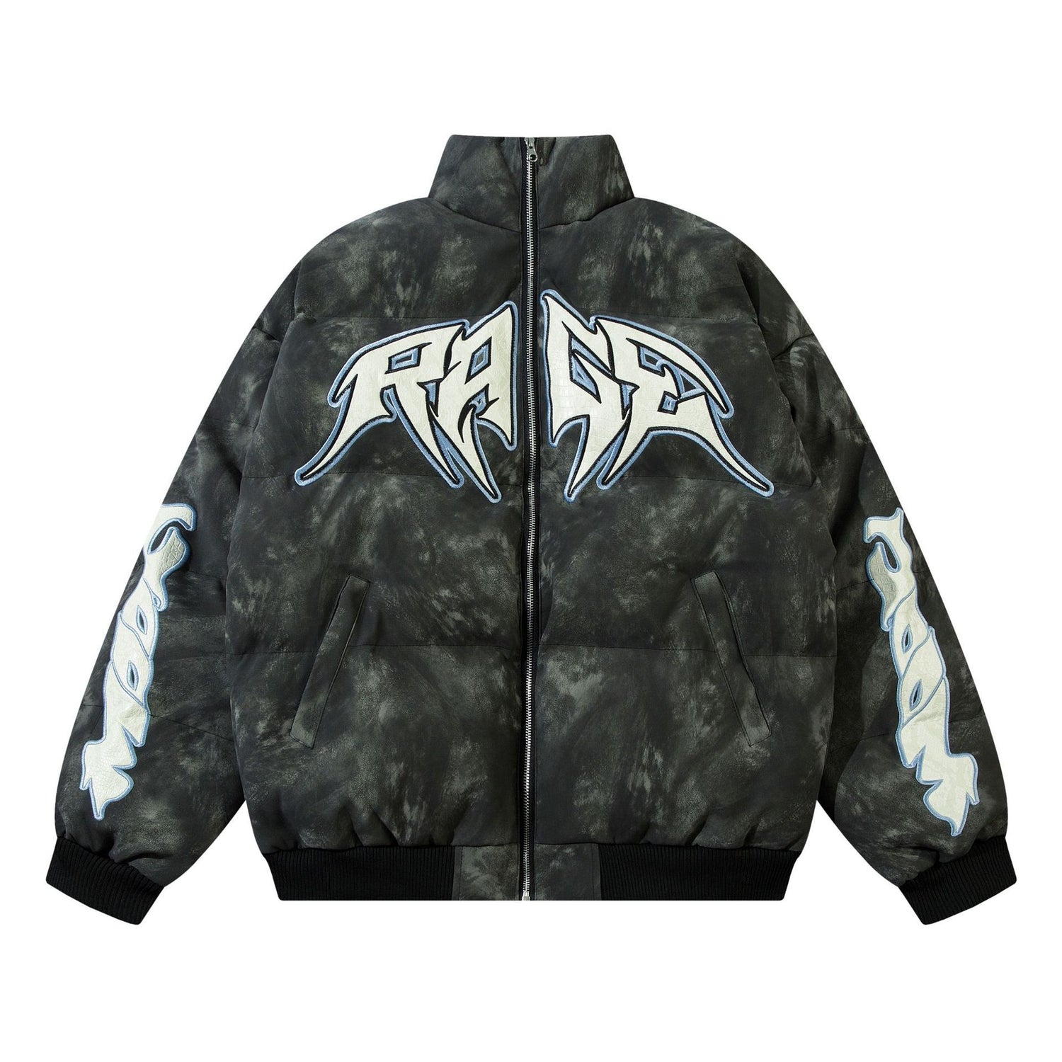 Amerikanischer Retro-gewaschener, abgenutzter, befestigter Stoffmantel mit Stickereien und Baumwollpolsterung - Schwarz / M ist auf Lager und wird versandt, sobald es wieder verfügbar ist
