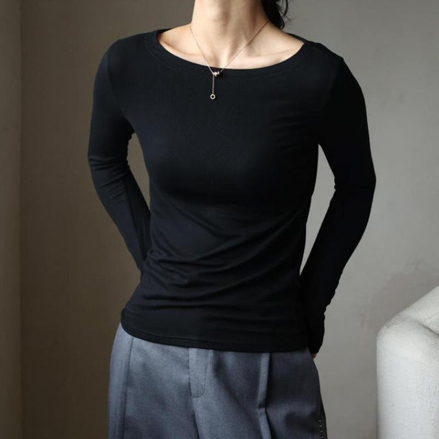 Langärmliges Modal-Stretch-T-Shirt für Damen – Lässige, einfache Basics