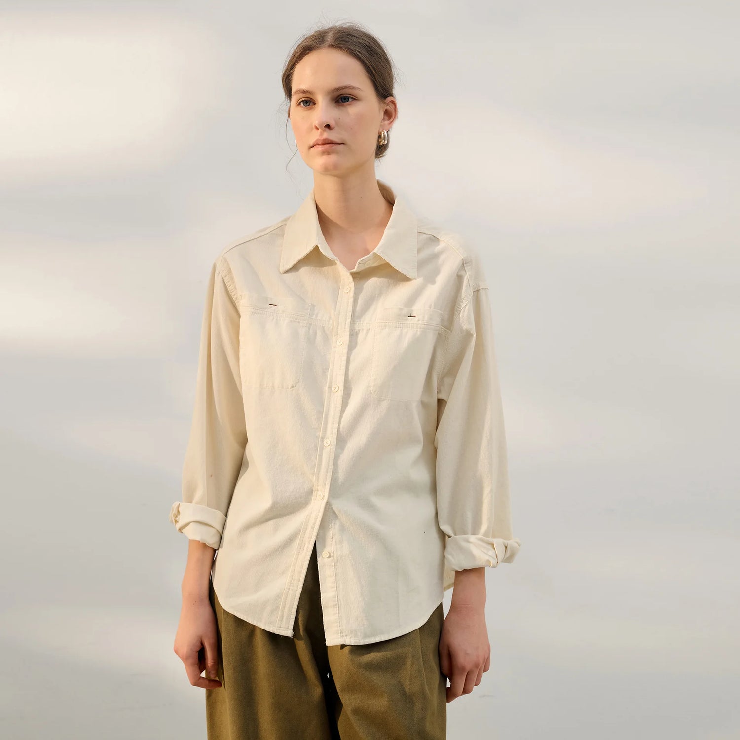 Entdecken Sie die perfekte Mischung aus Vintage-Charme und modernem Komfort mit unserem lässigen Damenhemd aus 100 % Baumwollcord. Dieses einfarbige Hemd wurde für die kühlen Tage im Herbst und Winter gefertigt und bietet einen zeitlosen Look, der sowohl vielseitig als auch schmeichelhaft ist. Der weiche Cordstoff sorgt für ein gemütliches Gefühl und verleiht Ihnen gleichzeitig eine mühelos stilvolle, entspannte Ausstrahlung. Egal, ob Sie Freunde treffen, Besorgungen machen oder einfach nur einen frischen Herbsttag genießen, dieses Hemd ist Ihr Lieblingsstück für lässige Eleganz.Premium-Funktionen für den Alltag