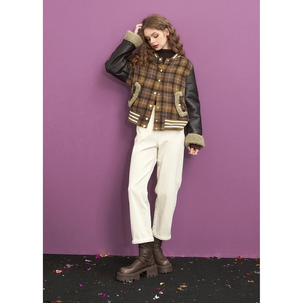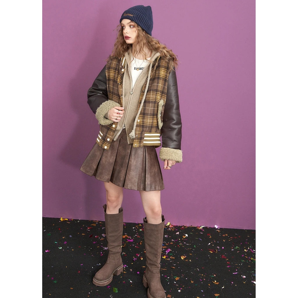 • Gespleißtes Design: Eine stylische Kombination aus Fleece und PU für einen einzigartigen, modernen Look.