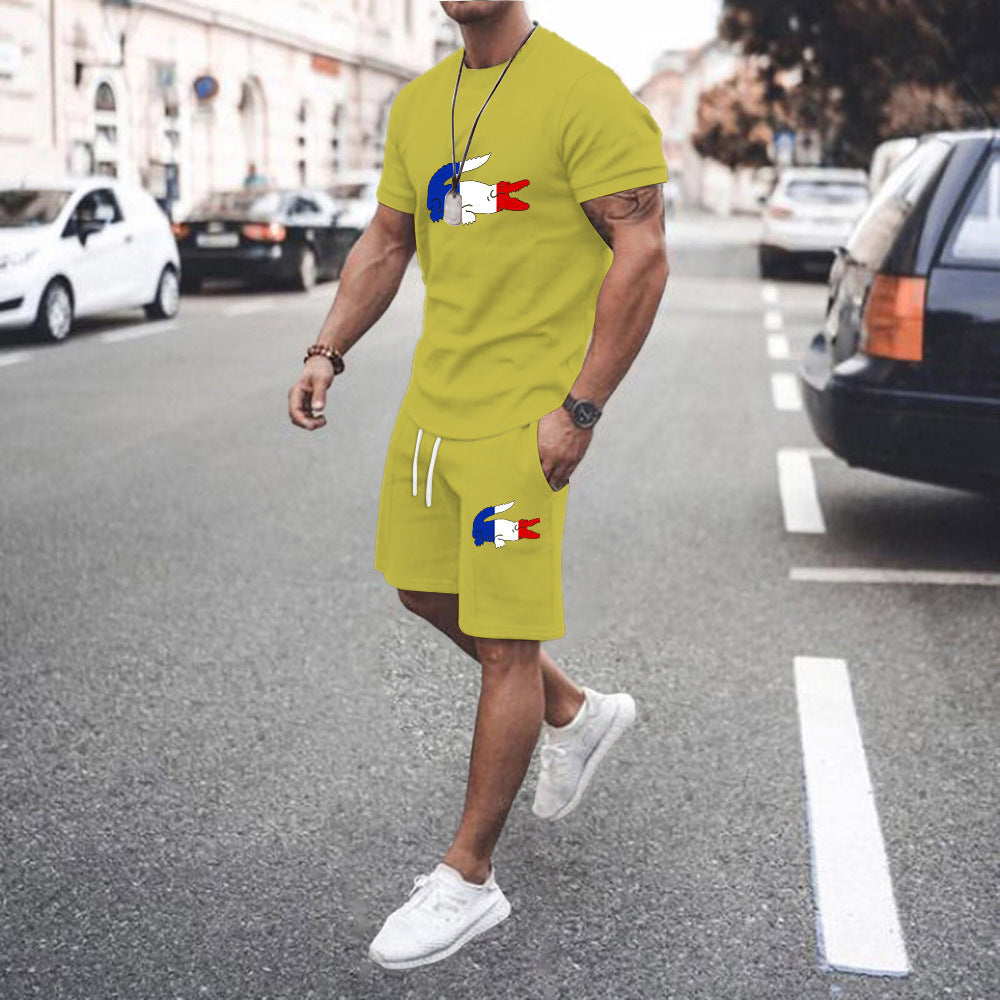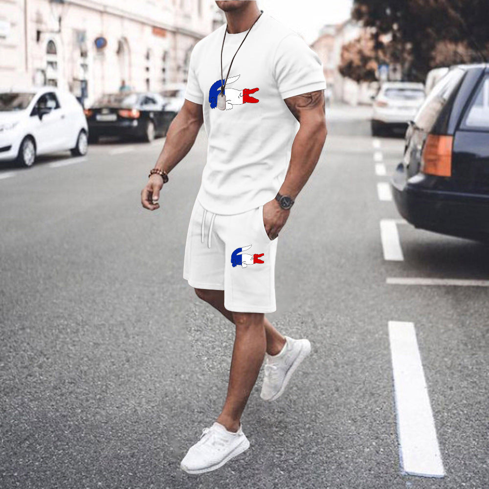 Rundhals-T-Shirt, lockeres Kurzarm-Set, Digitaldruck 3D
