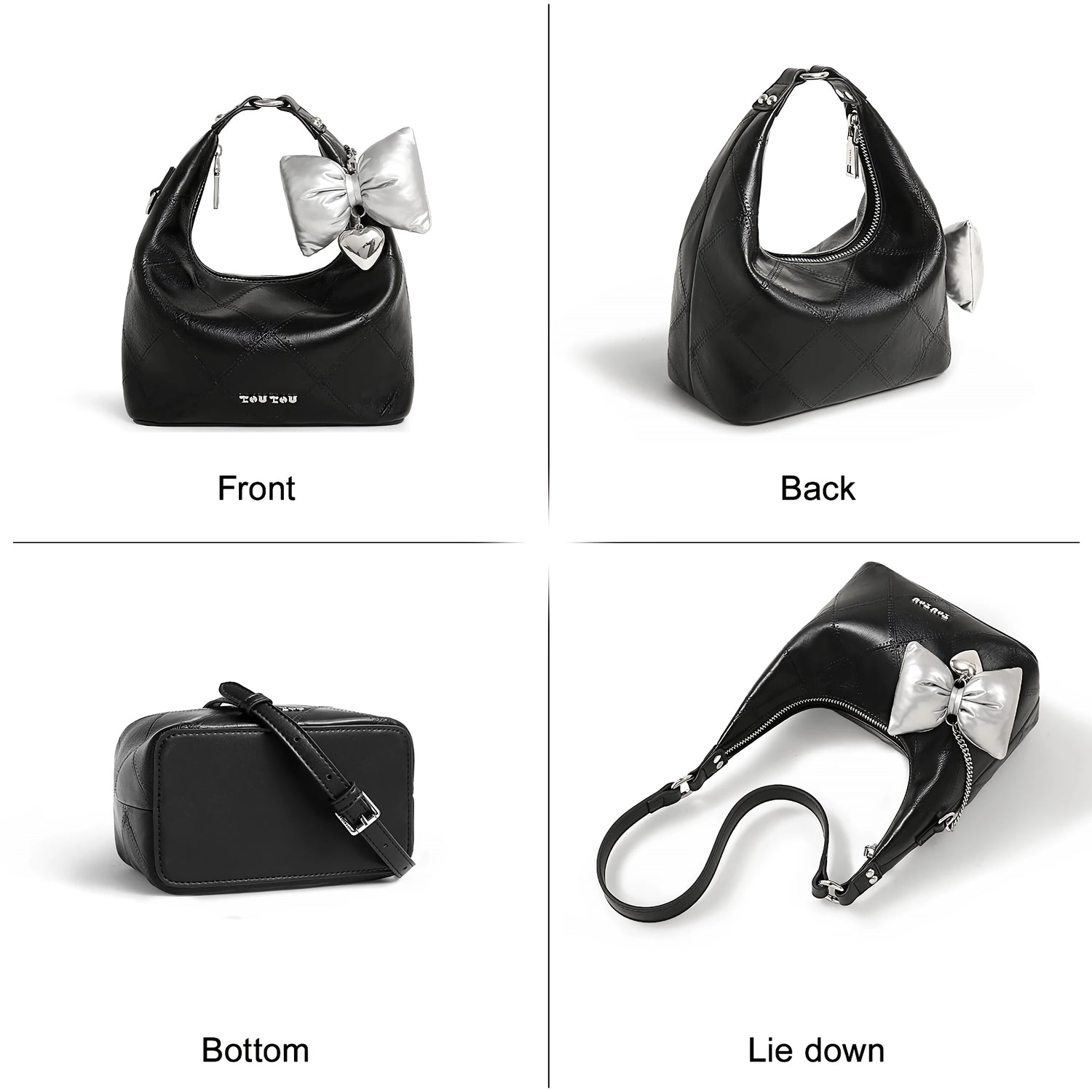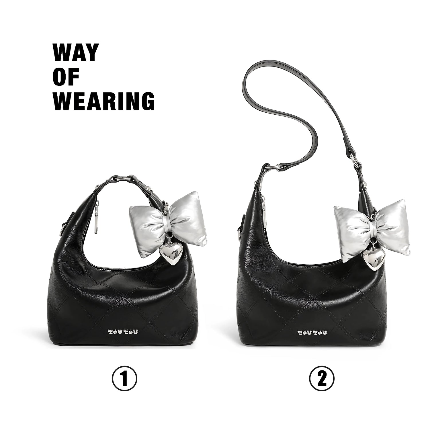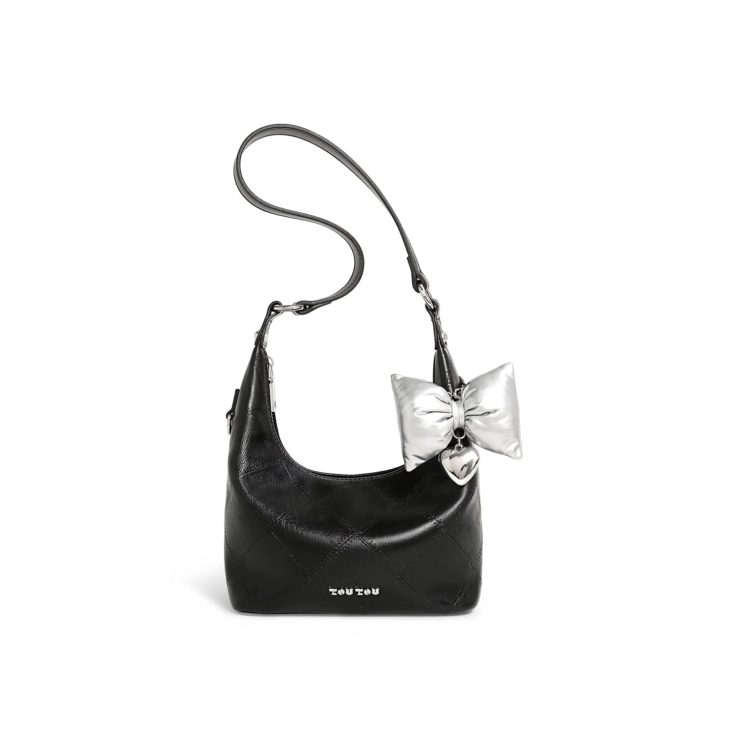 Vielseitige Tragetasche mit Rautengittermuster und Schmetterlingsschleifen-Anhänger für Damen - 18x13x10cm / Schwarz ist auf Lager und wird versandt, sobald es wieder verfügbar ist