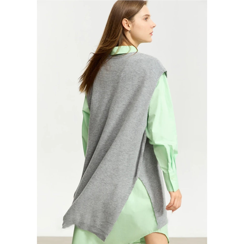 Dieses ärmellose Oberteil ist nicht nur ein modisches Statement, sondern auch eine praktische Ergänzung für Ihre Garderobe. Die lange, lockere Passform macht es ideal für Lagenlooks, sodass Sie mit nur einem Teil mehrere Looks kreieren können. Die Seitenschlitze sorgen für Bewegungsfreiheit und machen es zu einer bequemen Wahl für den ganzen Tag. Egal, ob Sie zur Arbeit gehen, Besorgungen machen oder einen entspannten Tag genießen, diese Pullunderweste ist Ihre erste Wahl.