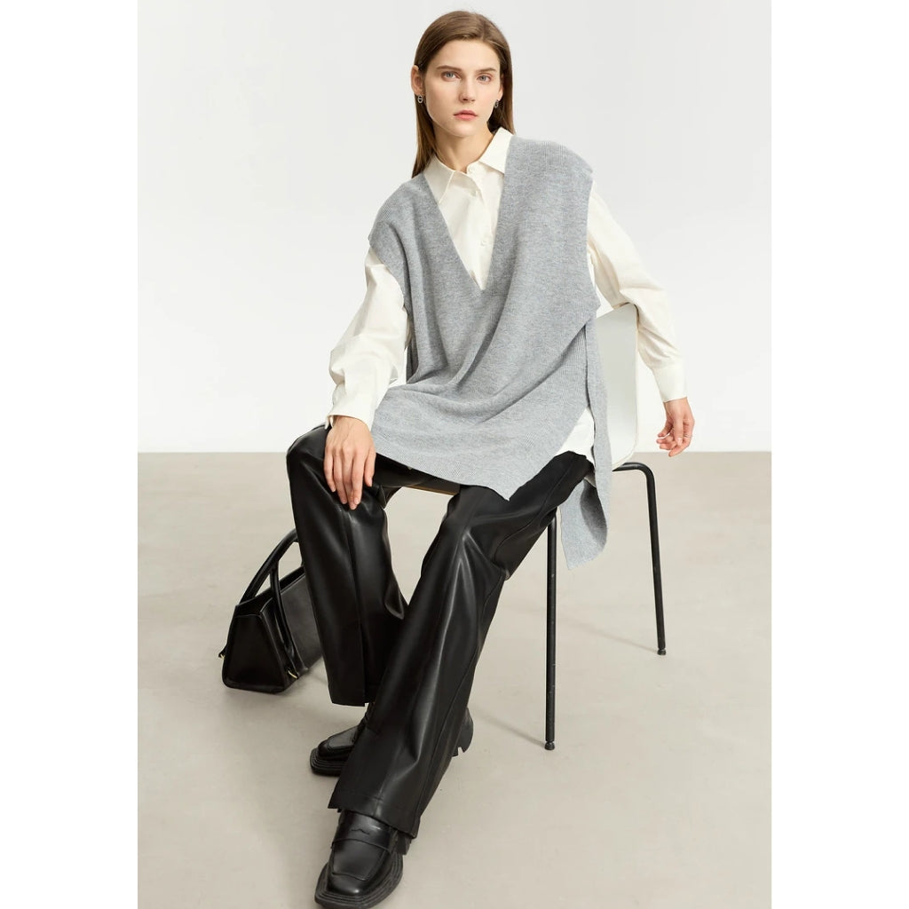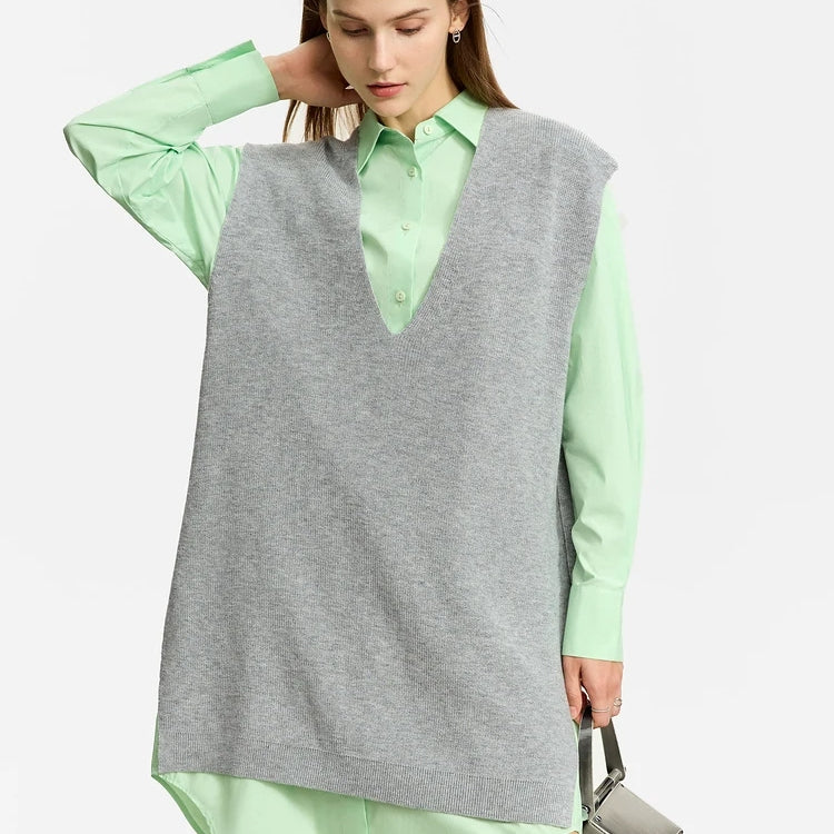 Beginnen Sie die neue Saison mit Stil und Komfort mit unserer langen, lockeren, ärmellosen Herbst-Pulloverweste mit V-Ausschnitt für Damen. Dieses vielseitige Kleidungsstück bietet einen schicken, minimalistischen Look und hält Sie in den kühleren Monaten warm. Die lange, lockere Passform und die Seitenschlitze verleihen Ihrer Freizeitgarderobe einen Hauch von Raffinesse und machen es perfekt zum Tragen über Ihren Lieblingstops und -blusen.