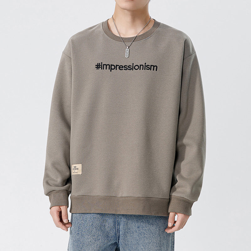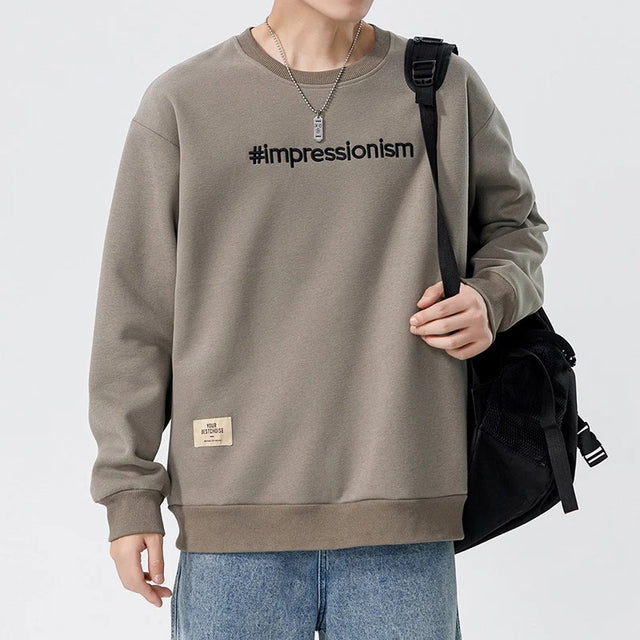 Herbst Langarm Rundhals Herren Stickerei Sweatshirt