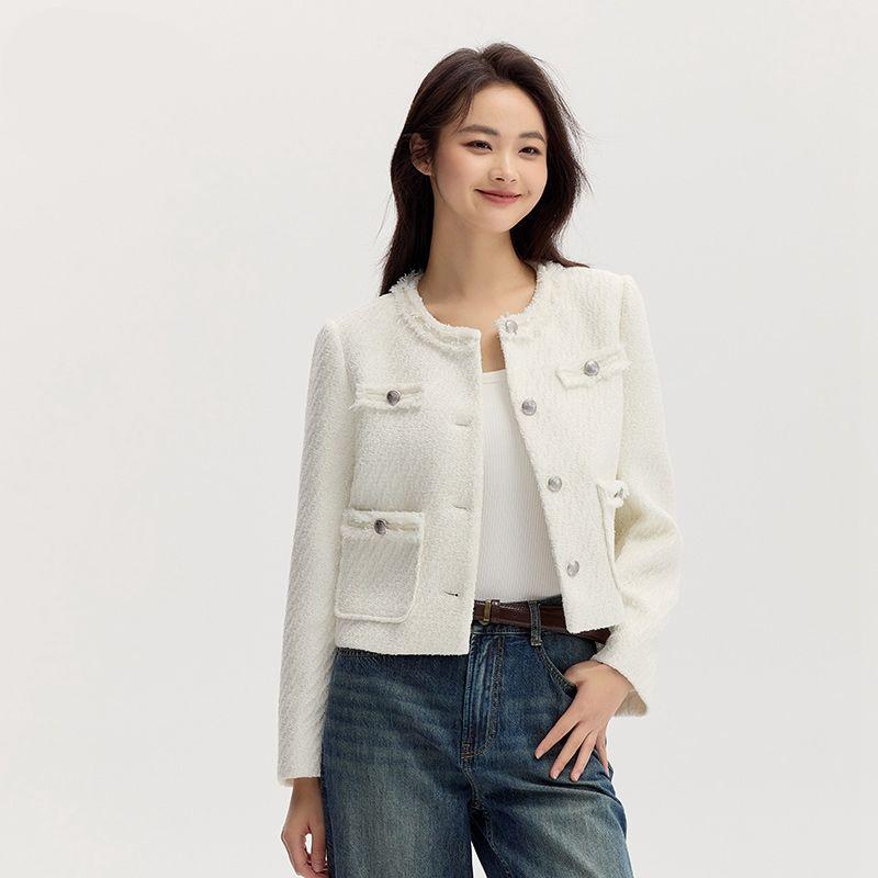 Diese Jacke aus hochwertigem Polyester hat eine weiche und dennoch strapazierfähige Textur, sodass Sie den ganzen Tag bequem und stilvoll bleiben. Die kurzen Ärmel werden durch stilvolle Schulterpolster und elegante Quasten ergänzt, die dem Gesamtdesign eine einzigartige Note verleihen. Der einreihige Verschluss und der Rundhalskragen verleihen ihm einen eleganten, maßgeschneiderten Look, der sich perfekt für legere oder formelle Anlässe eignet.- Ärmellänge: Lang