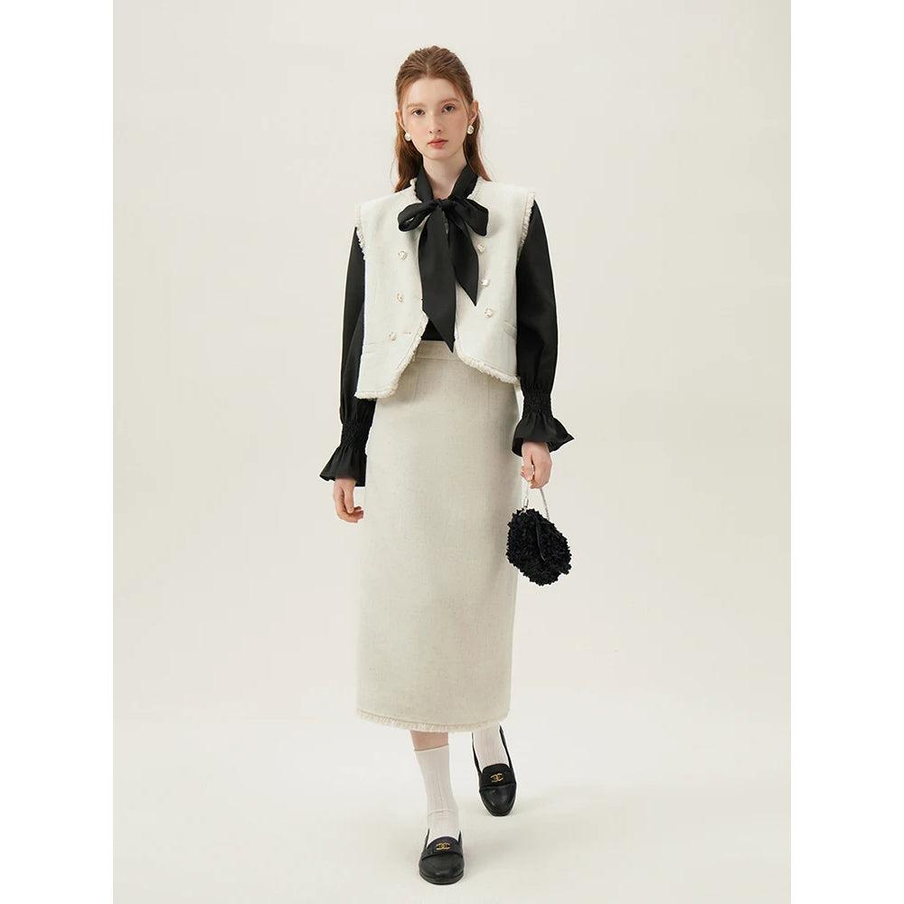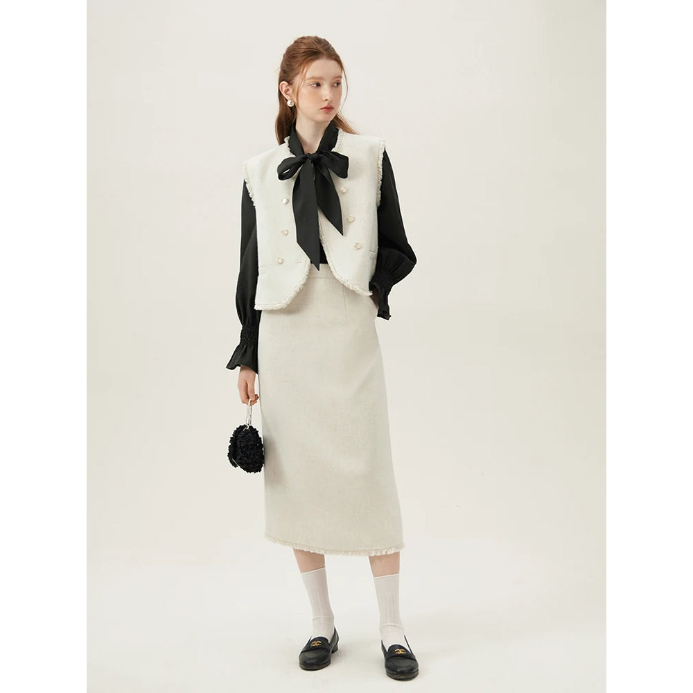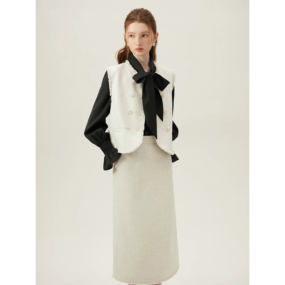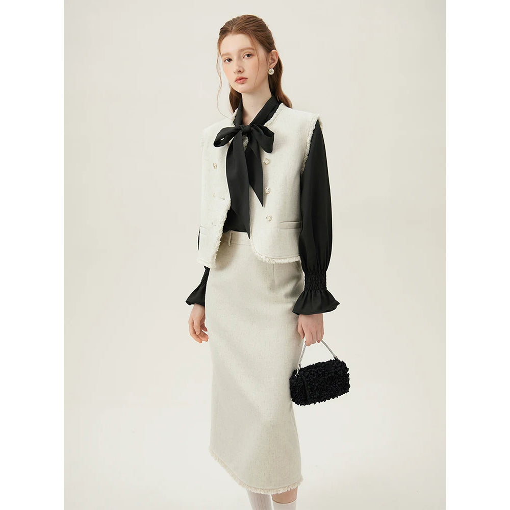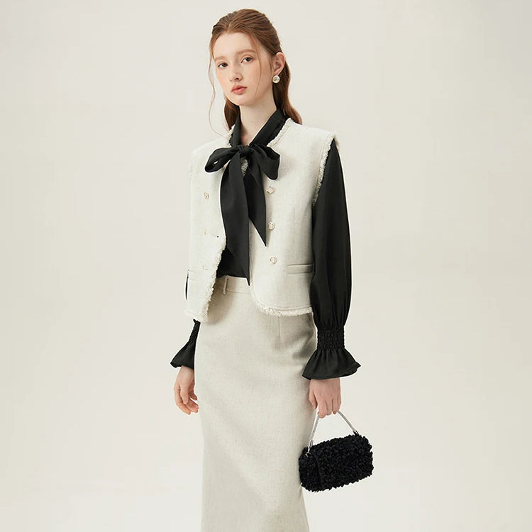 Was diese Weste auszeichnet, ist ihre Fähigkeit, klassische und moderne Stile nahtlos zu verbinden. Die Farboptionen Apricot und Weiß verleihen eine frische und saubere Ausstrahlung, perfekt für die Frühlings- und Sommersaison. Egal, ob Sie ins Büro gehen oder an einer formellen Veranstaltung teilnehmen, mit diesem Set heben Sie sich selbstbewusst und elegant hervor.