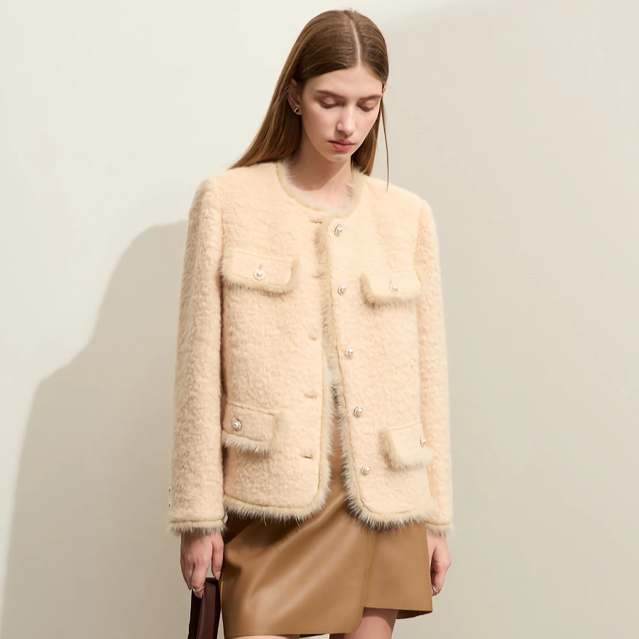 Unser Wollmantel ist aus einer Mischung hochwertiger Materialien gefertigt, darunter Schafwolle, Acryl, Alpaka, Mohair und Polyamid. Diese einzigartige Kombination sorgt für Wärme, Haltbarkeit und ein luxuriöses Gefühl. Der Mantel hat lange Ärmel, ein weit tailliertes Design und praktische Taschen, die Ihrem Outfit sowohl Funktionalität als auch Stil verleihen. Das solide Muster und der Rundhalskragen machen ihn vielseitig für verschiedene Anlässe, von lässigen Ausflügen bis hin zu formelleren Veranstaltungen.