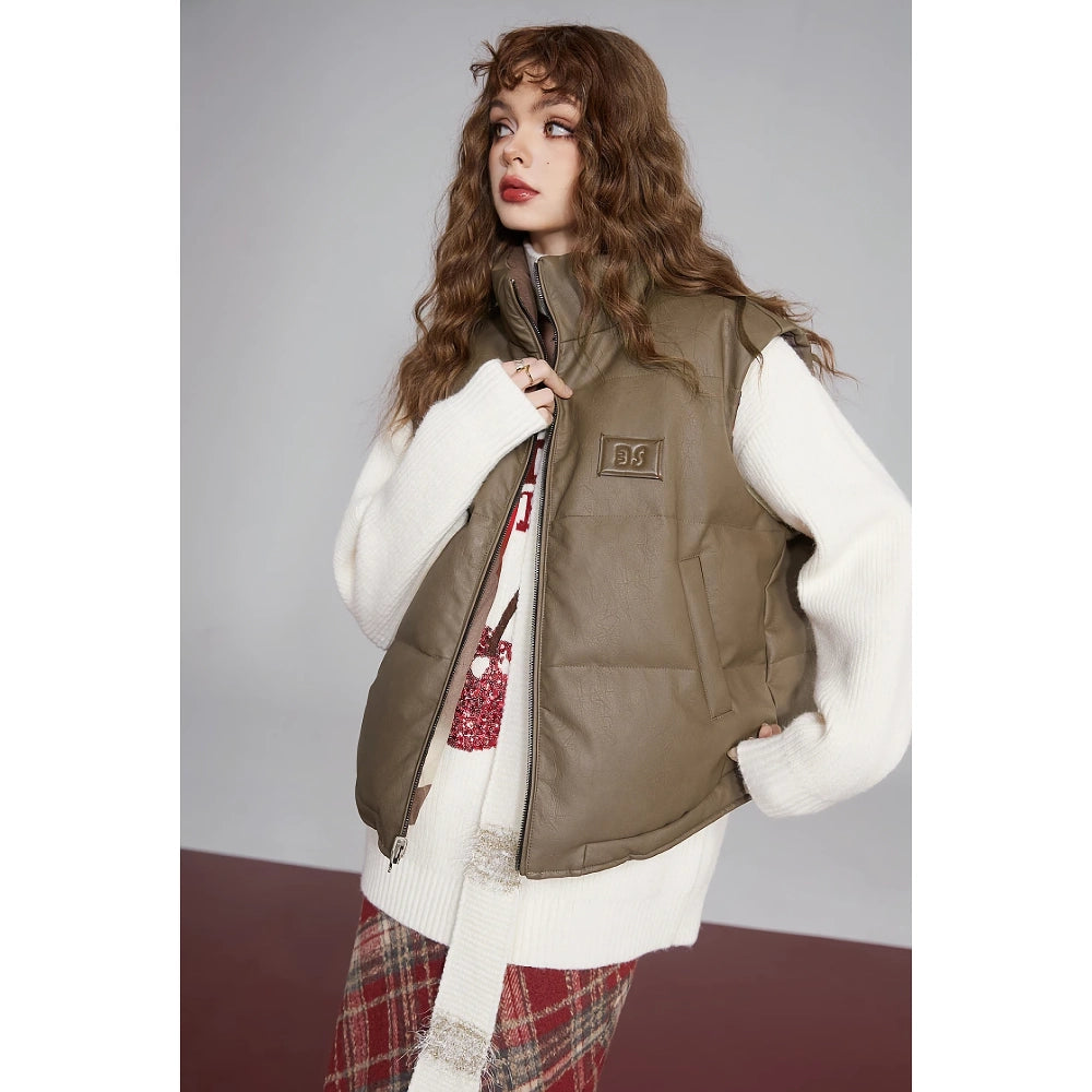 Die aus hochwertigen Materialien gefertigte Graphic Brown PU Thick Vest ist mit weißen Entendaunen gefüllt und bietet eine hervorragende Isolierung, die Sie auch bei kältestem Wetter warm hält. Das Außenmaterial besteht aus strapazierfähiger Viskose, die Langlebigkeit und ein elegantes Aussehen gewährleistet. Die Weste verfügt über ein einzigartiges Fruchtmuster, das Ihren Outfits eine verspielte Note verleiht.