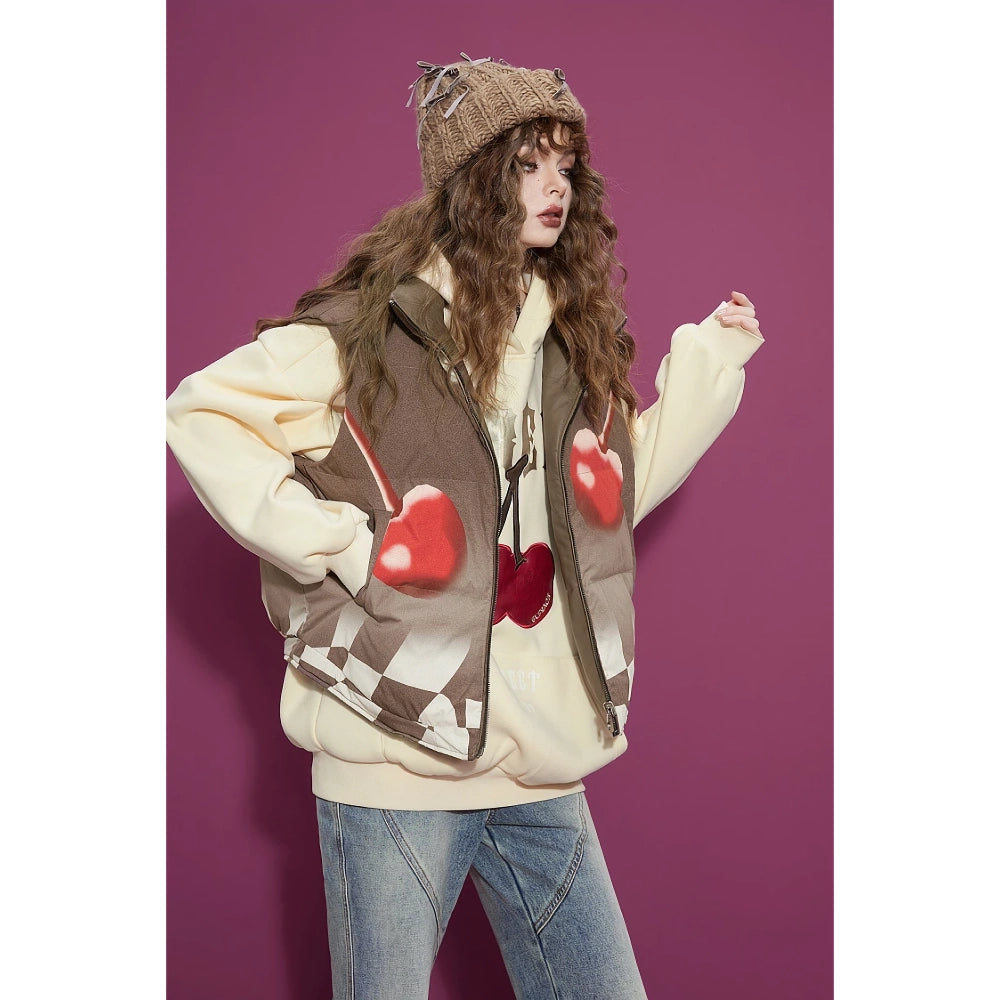 Was diese Weste wirklich besonders macht, ist ihre Kombination aus hochwertigen Materialien und durchdachtem Design. Der Daunenanteil von 90 % sorgt für hervorragende Wärme ohne zusätzliches Gewicht und macht sie zur idealen Wahl zum Tragen über Ihren Lieblingsoutfits. Das einzigartige Fruchtmuster und der koreanische Stil verleihen ihr einen trendigen Touch, mit dem Sie sich von der Masse abheben.