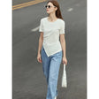 Minimalistisches asymmetrisches Kurzarm-T-Shirt mit Rundhalsausschnitt