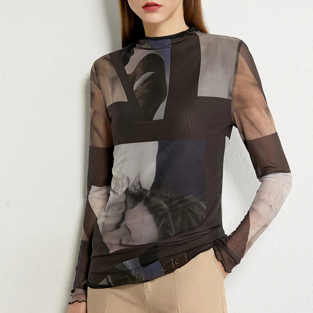 Werten Sie Ihren Stil auf mit einem minimalistischen Langarm-Mesh-T-Shirt für Damen