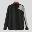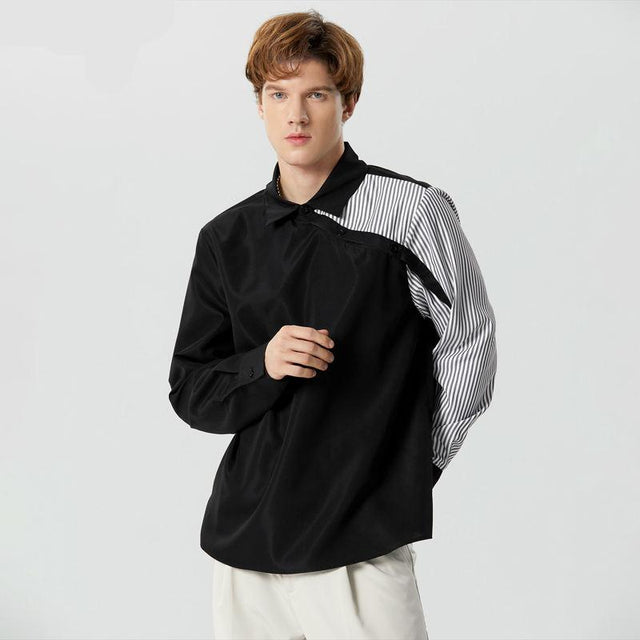 Gestreiftes Patchwork-Revers-Langarm-Freizeithemd für Herren - L / Schwarz ist auf Lager und wird versandt, sobald es wieder verfügbar ist