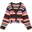 Unser Y2K Retro Gyaru Sweater ist aus einer Mischung hochwertiger Materialien wie Acryl, Polyester, Wolle, Elasthan und Polyamid gefertigt. Das Streifenmuster und das locker sitzende Design verleihen ihm einen entspannten und dennoch trendigen Look, perfekt für jeden lässigen Ausflug oder einen gemütlichen Tag zu Hause. Die mittlere Dehnbarkeit sorgt für eine bequeme Passform, während der einreihige Verschluss mit Knopfverzierung einen Hauch von Eleganz verleiht.- Materialzusammensetzung: Acryl, Polyester, Wolle, Elasthan, Polyamid