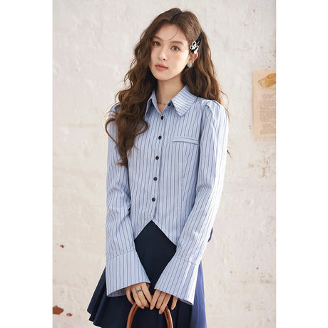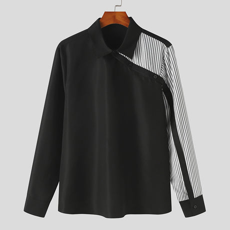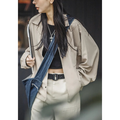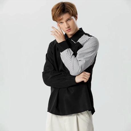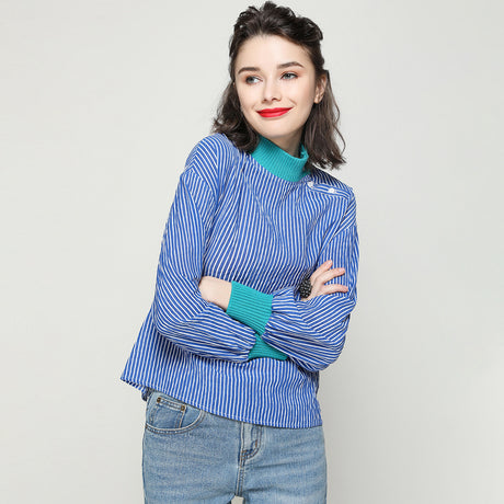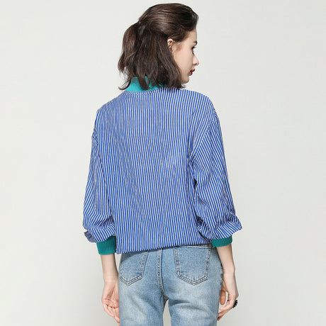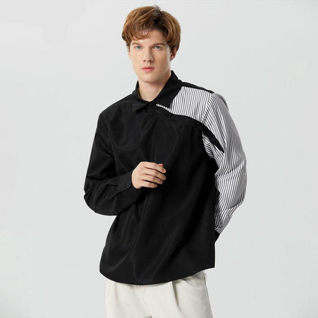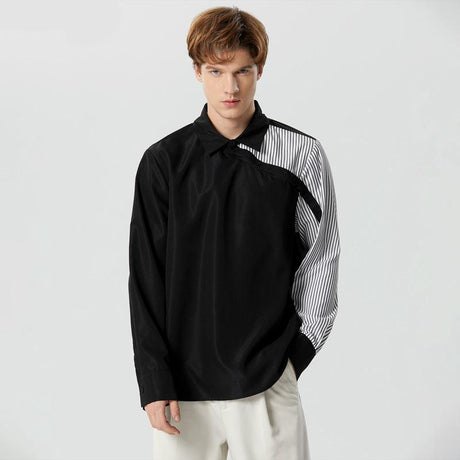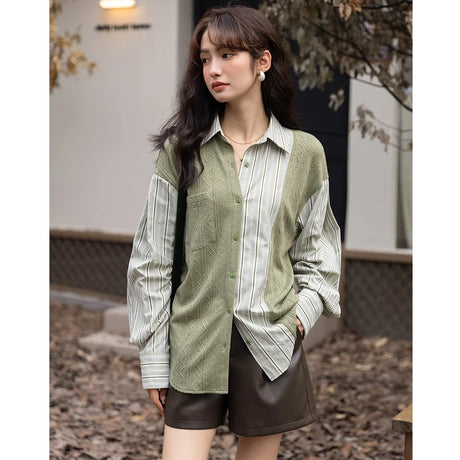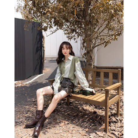 Normaler Preis $135.00 SGDGrundpreis /Nicht verfügbarGestreiftes Patchwork-Revers-Langarm-...