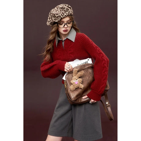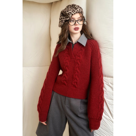 Normaler Preis $138.00 SGDGrundpreis /Nicht verfügbarHerbst Koreanische Strick Patchwork G...