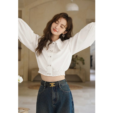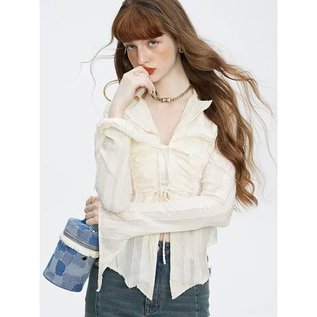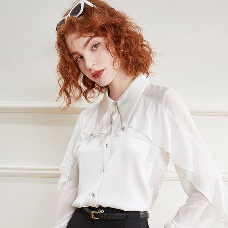 Normaler Preis $101.00 SGDGrundpreis /Nicht verfügbarElegantes Falbala-Hemd mit langen Ärm...