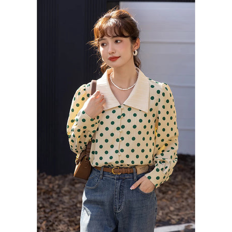 Normaler Preis $151.00 SGDGrundpreis /Nicht verfügbarVintage Polka Dot Rollkragenbluse für...