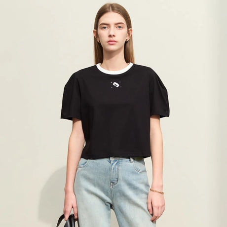 Süßes T-Shirt mit Cartoon-Stickerei f...
