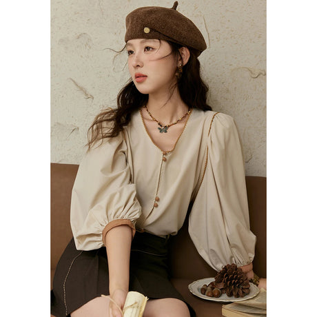 Normaler Preis $99.00 SGDGrundpreis /Nicht verfügbarChiffon-Shirt mit Puffärmeln und V-Au...