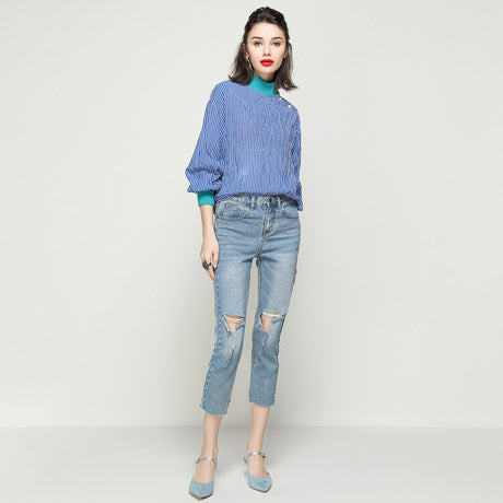 Normaler Preis $118.00 SGDGrundpreis /Nicht verfügbarGestreifte gerippte Bluse mit Laterne...