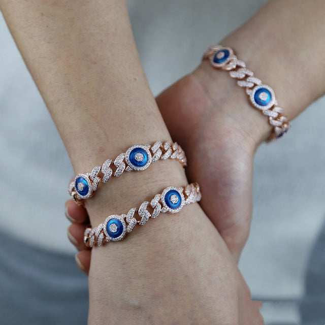 Blaues kubanisches Zirkon-Armband mit eingelegtem Zirkon-Schmuck