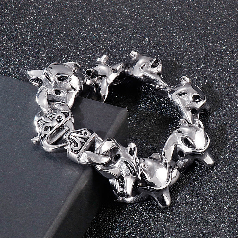 Persönlichkeitsverschmiertes Schädel-Tierkopf-Herrenarmband aus Titanstahl