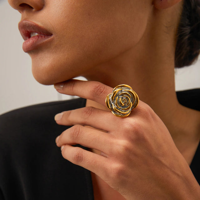 Werten Sie Ihre Schmuckkollektion mit unserem geometrischen Blumenring aus 18 Karat vergoldetem Edelstahl auf. Egal, ob Sie sich für eine Party schick machen, einen Jahrestag feiern oder bei einer Hochzeit das Eheversprechen austauschen, dieser Ring verleiht jedem Ensemble einen Hauch von Eleganz und Anziehungskraft. Seine robuste Konstruktion, sein zeitloses Design und seine exquisiten Details machen ihn zu einem unverzichtbaren Accessoire für jede moderne Frau. Kaufen Sie jetzt ein und erfreuen Sie sich an zeitloser Schönheit!