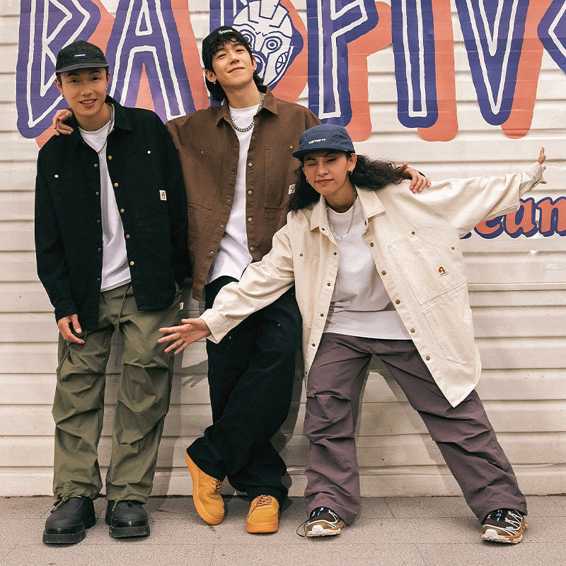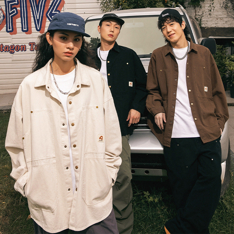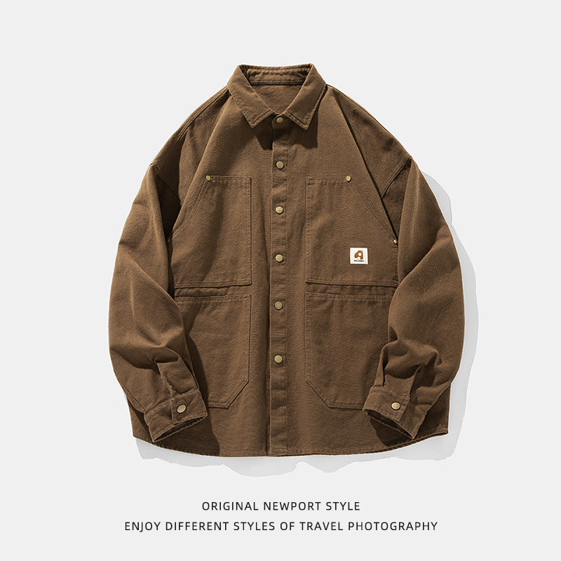Langarmhemd aus gewaschener amerikanischer Retro-Baumwolle