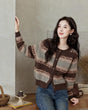 Erleben Sie die gemütliche Eleganz der Saison mit diesem gestreiften Retro-Strickcardigan, perfekt für Herbst und Winter. Dieser Cardigan im Vintage-Stil ist das ideale Kleidungsstück, um Ihre Garderobe aufzuwerten. Seine weichen, kontrastierenden Streifen und der bequeme mittlere Stretch machen ihn zu einer vielseitigen Schichtoption für kühles Wetter. Egal, ob Sie ins Büro gehen, einen Wochenendspaziergang genießen oder einfach zu Hause entspannen, dieser Cardigan bietet die perfekte Balance aus Wärme und Stil. Sein klassischer Rundhalsausschnitt und das gerade Ärmeldesign sorgen für einen zeitlosen Reiz und lassen sich leicht mit Jeans, Röcken oder sogar Kleidern kombinieren.