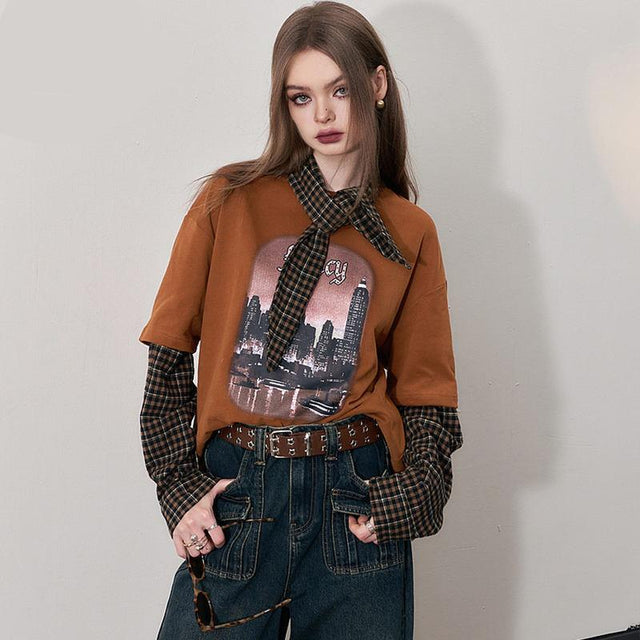 Verpassen Sie es nicht, dieses einzigartige Stück in Ihre Garderobe aufzunehmen. Erleben Sie die Kombination aus Komfort, Stil und Kreativität mit unserem Graphic Spliced T-Shirt für Damen. Klicken Sie auf die Schaltfläche unten, um es in Ihren Warenkorb zu legen und diesen Herbst ein mutiges Modestatement zu setzen. Jetzt bestellen und in Sachen Mode die Nase vorn behalten!