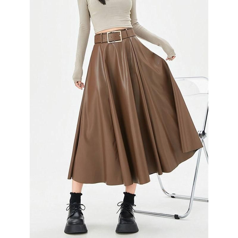 Eleganter High-Waist-Kunstlederrock mit Gürtel
