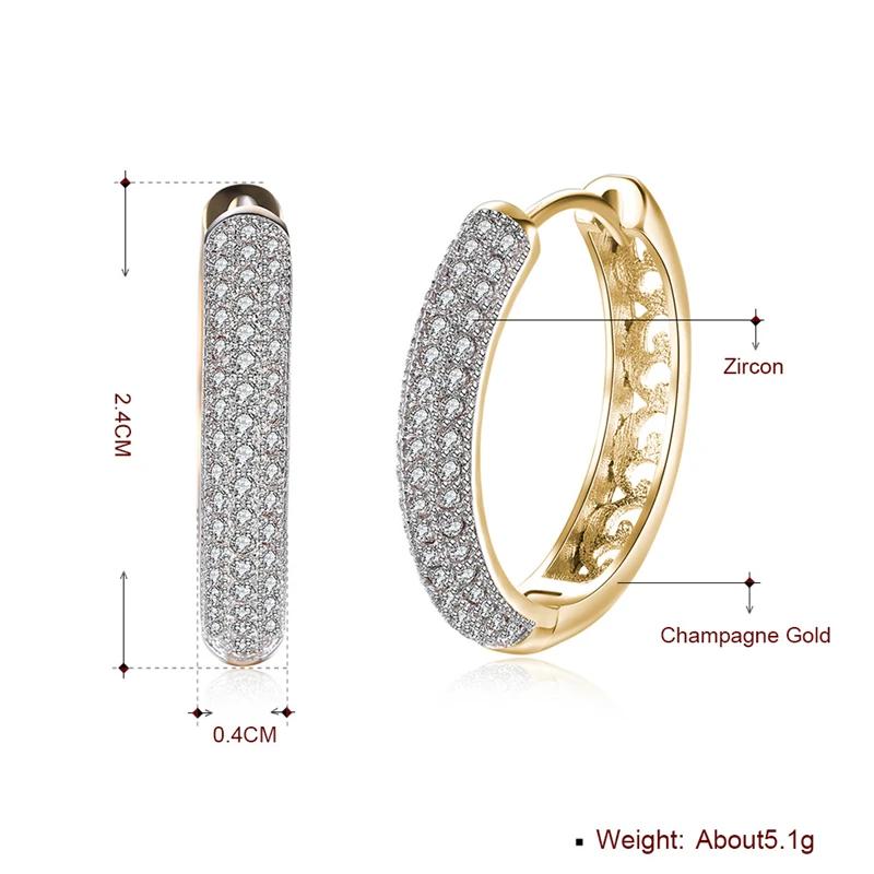 Treten Sie in die Eleganz ein mit diesen atemberaubenden Creolen aus Sterlingsilber mit Zirkonia in 18 Karat Goldplattierung. Sie wurden für die Frau entworfen, die bei jeder Gelegenheit gerne glänzt. Diese Ohrringe zeichnen sich durch ein exquisites, hohles, rundes Design aus, das wunderschön mit funkelnden AAA-Zirkonsteinen verziert ist. Sie sind aus hochwertigem 925er Sterlingsilber gefertigt und mit 18 Karat Gold plattiert. Sie strahlen Luxus und Charme aus und sind damit die perfekte Ergänzung für jede Schmuckkollektion. Egal, ob Sie eine Hochzeit, eine Party oder ein romantisches Date besuchen, diese Ohrringe werden Ihren Look aufwerten und einen bleibenden Eindruck hinterlassen.