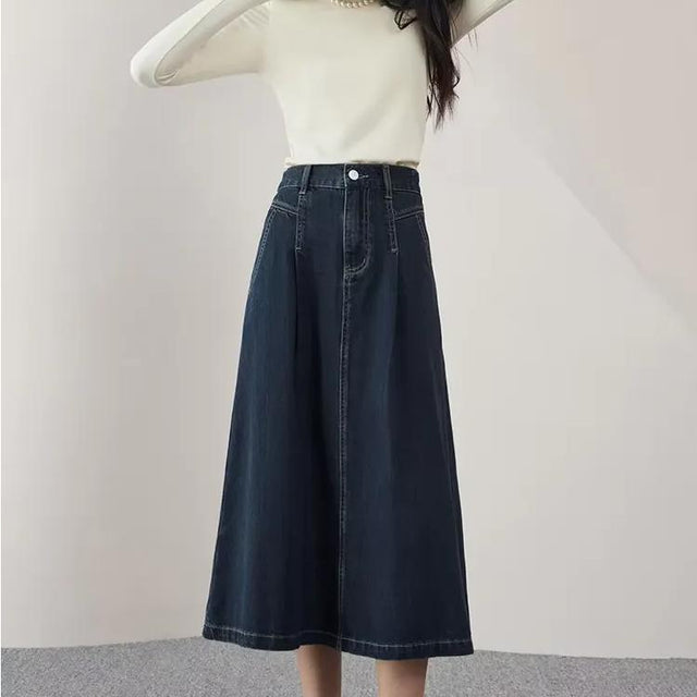 Bleiben Sie mühelos schick mit diesem hoch taillierten A-Linien-Retro-Jeansrock aus 100 % Baumwolle, der für die moderne Frau entworfen wurde, die einen Hauch von Vintage-Flair liebt. Dieser vielseitige Jeansrock ist perfekt für die Herbst- und Wintersaison und kombiniert mit seiner lockeren, mittellangen Silhouette Komfort und Stil. Egal, ob Sie einen lässigen Tag verbringen oder sich für einen entspannten Abend schick machen möchten, dieser Rock bietet einen lässigen, modischen Look, der nahtlos in Ihre Garderobe passt. Kombinieren Sie ihn mit Ihrem Lieblingspullover oder Ihrer Lieblingsbluse und Sie sind bereit, den Tag selbstbewusst anzugehen.