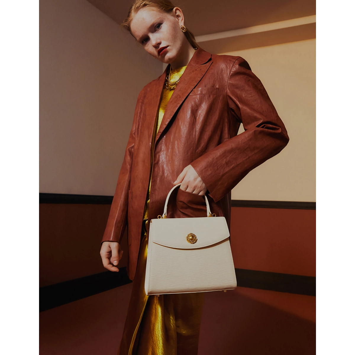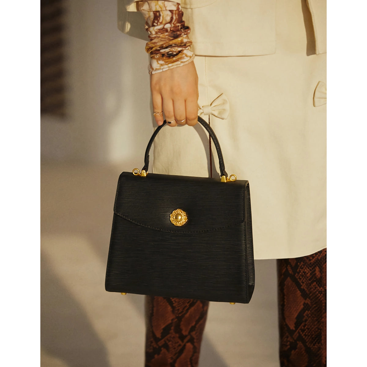 Von lässigen Ausflügen bis hin zu formellen Anlässen ist diese Handtasche das perfekte Accessoire, um Ihr Ensemble aufzuwerten. Ihr klassisches Design sorgt dafür, dass sie zu einer Vielzahl von Outfits passt, während die praktischen Eigenschaften sie zu einer zuverlässigen Wahl für den täglichen Gebrauch machen. Kombinieren Sie Mode mit Funktionalität und verleihen Sie Ihrer Garderobe mit dieser atemberaubenden Umhängetasche einen Hauch von Retro-Eleganz.