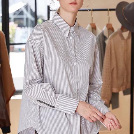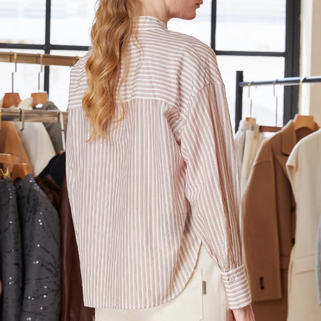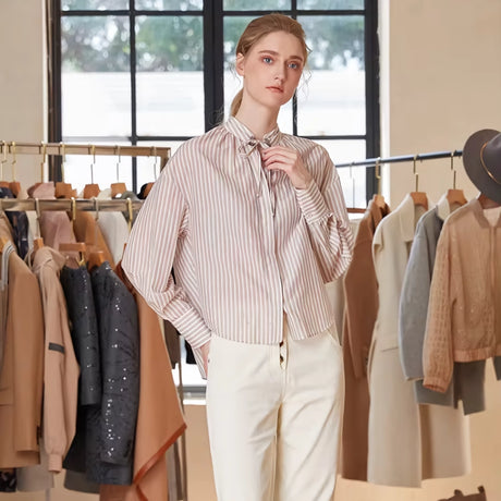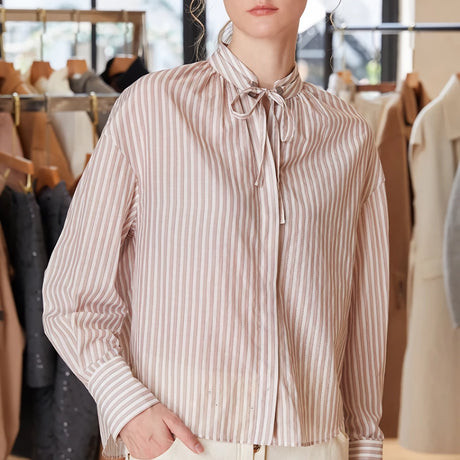 Normaler Preis $159.99 USDGrundpreis /Nicht verfügbarLuxuriöse gestreifte Langarmbluse aus...