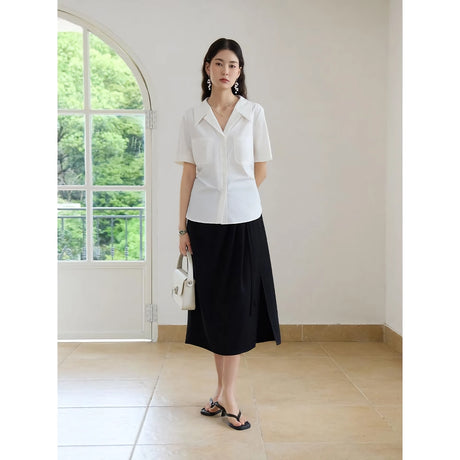 Normaler Preis $205.99 USDGrundpreis /Nicht verfügbarEleganter schwarzer Faltenrock mit ho...