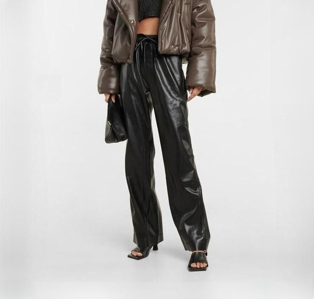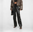 Erleben Sie zeitlose Eleganz mit der geraden schwarzen Retro-Lederhose für Damen