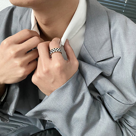 Normaler Preis $24.99 USDGrundpreis /Nicht verfügbarSchwarz-weißer Schachbrettring aus Ti...