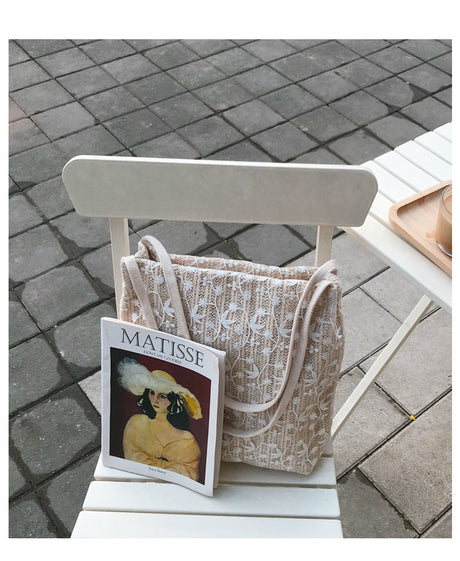Normaler Preis $45.99 USDGrundpreis /Nicht verfügbarSchultertasche aus Stroh, Spitze, Han...